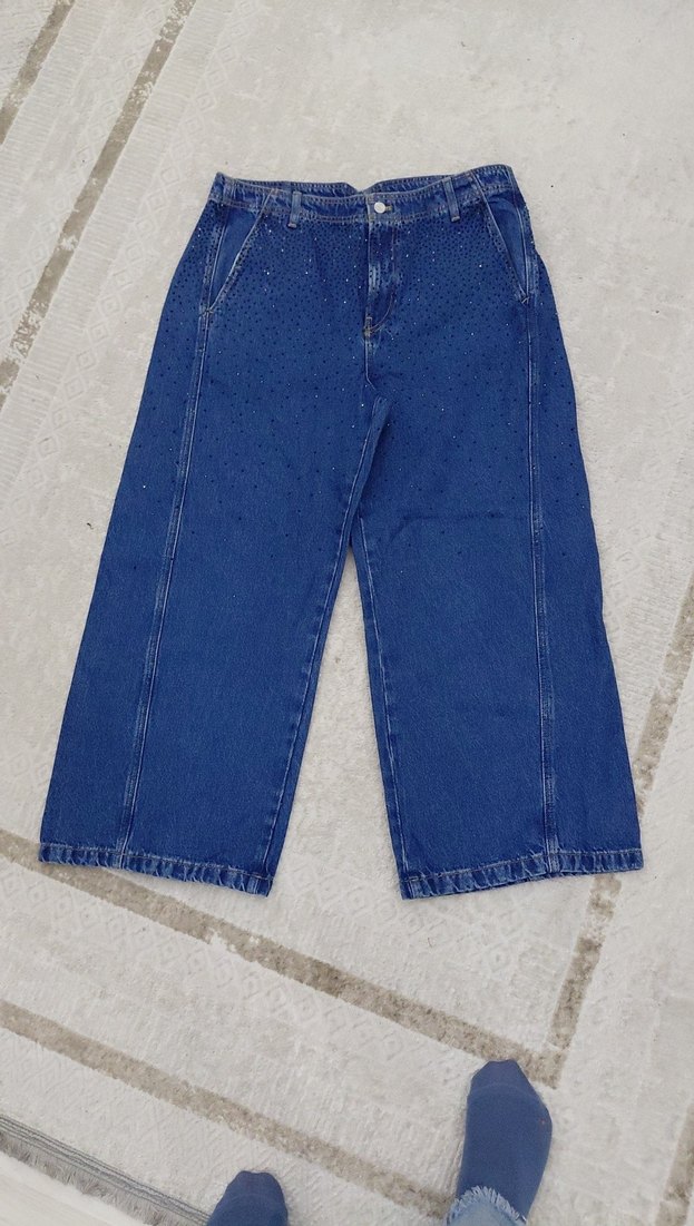 Zara Mavi Payetli Bol Kesim Midi Kot Pantolon model 17