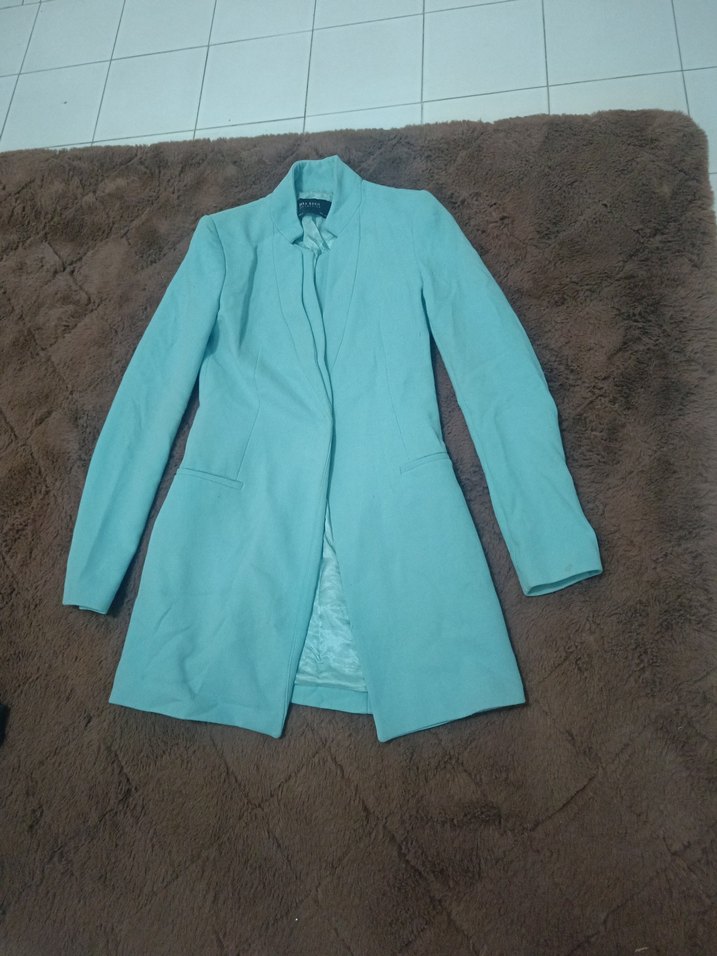 ZARA Mavi renkte Düğmeli Uzun Kadın ceket