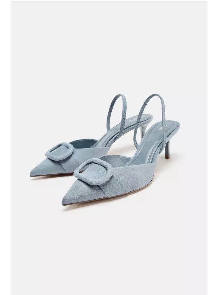Zara Mavi Süet Tokalı Stiletto Kadın Ayakkabı