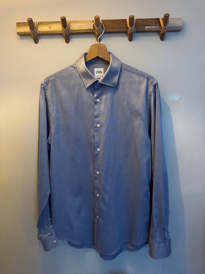 ZARA, Mavi Uzun Kollu, Slim Fit Gömlek