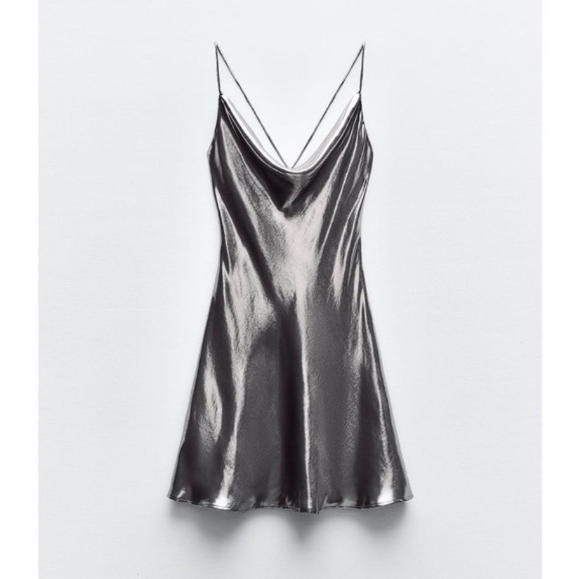 Parlak siyah renkte, askılı kolları ve drapeli V yakası olan, midi boyda, vücuda oturan kokteyl elbisesi. Minimalist ve şık tasarımıyla parti için uygun.✨
