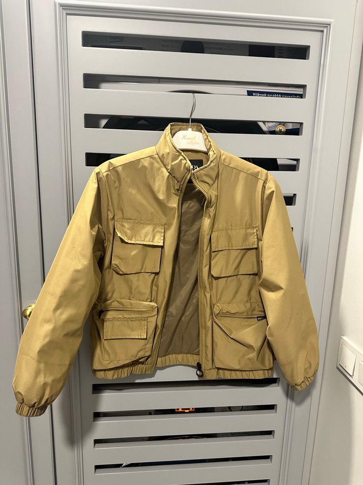 Ürün çok güzel hiçbir deformesi yok sadece kolundada cektıgım gibi silik bir şekilde noktalar yıkadım ama cıkmadı. Ama belli olan bişey değil. Bej renkte, bol kesim, uzun kollu ve kravat yaka detaylı kadın ceket. Sentetik kumaştan üretilmiş, günlük kullanıma uygun, çok cepli ve lastikli manşetli.