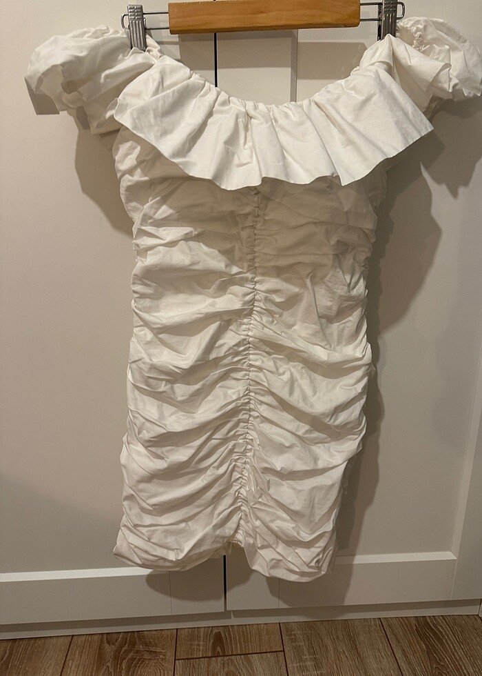 Zara Mezuniyet Beyaz Büzgülü Elbise