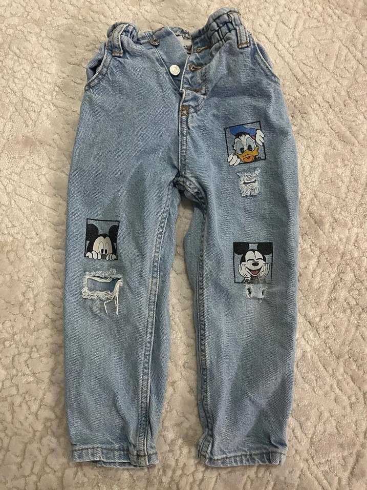 Zara Mickey ve Donald Baskılı Düğmeli Kız Kot Pantolon