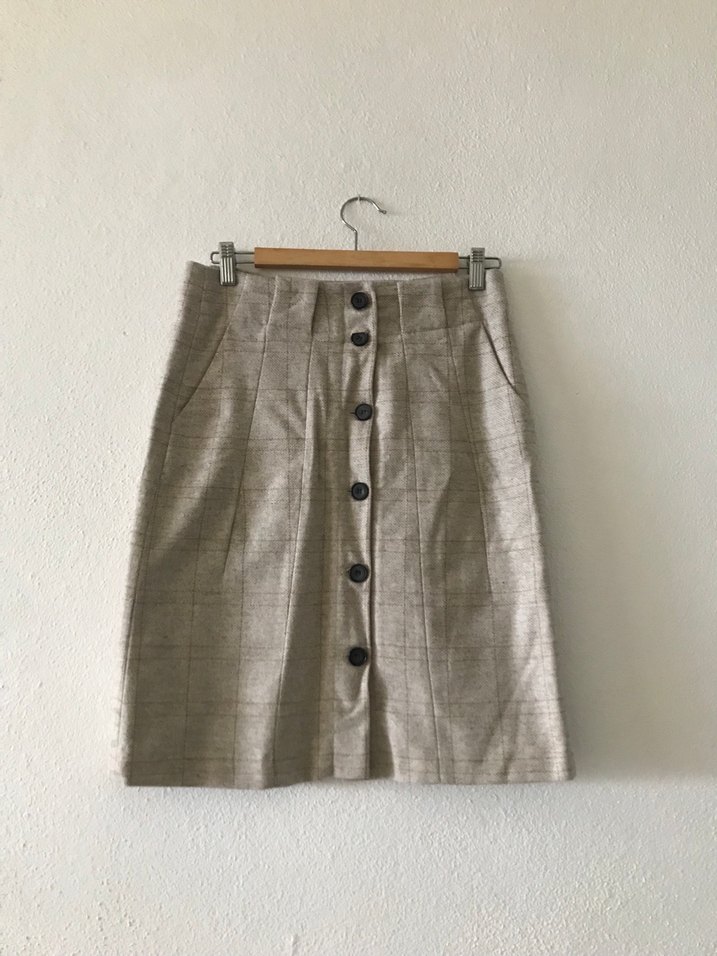 Zara basic koleksiyonundan, bu senenin modasına uygun, Small beden , kum beji rengi ekoseli, düğmeli, kalın kumaş ve iç astarlı etek.