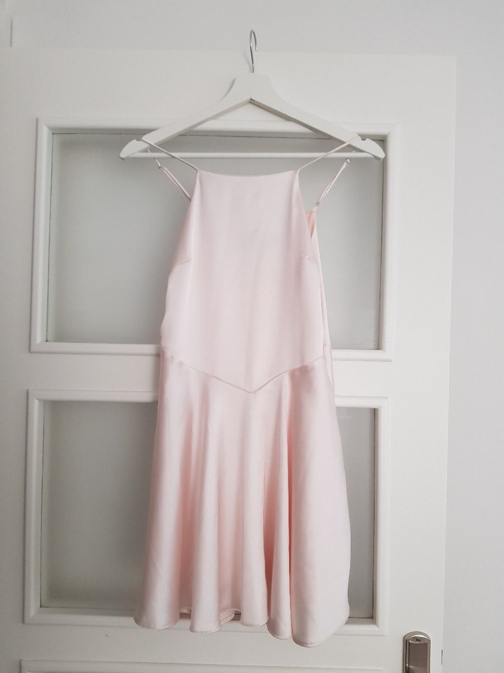 Zara'nın pudra mini elbisesi, saten kumaş. zara xs beden elbise . ustte sahane duruyor . 165 e 45 kg iken giymistim. daha fazla kiloya ya da büyük göğse olmaz. bu ebatlardakilere sahane yakisir. bir kac yerinde kucuk kucuk ip cekilmesi var giyilmeye engel degil belli belirsiz gozukmuyor bile .yine de fiyati bu yüzden dusuk tuttum. fotograflarda bu minik kusurları gosterdim