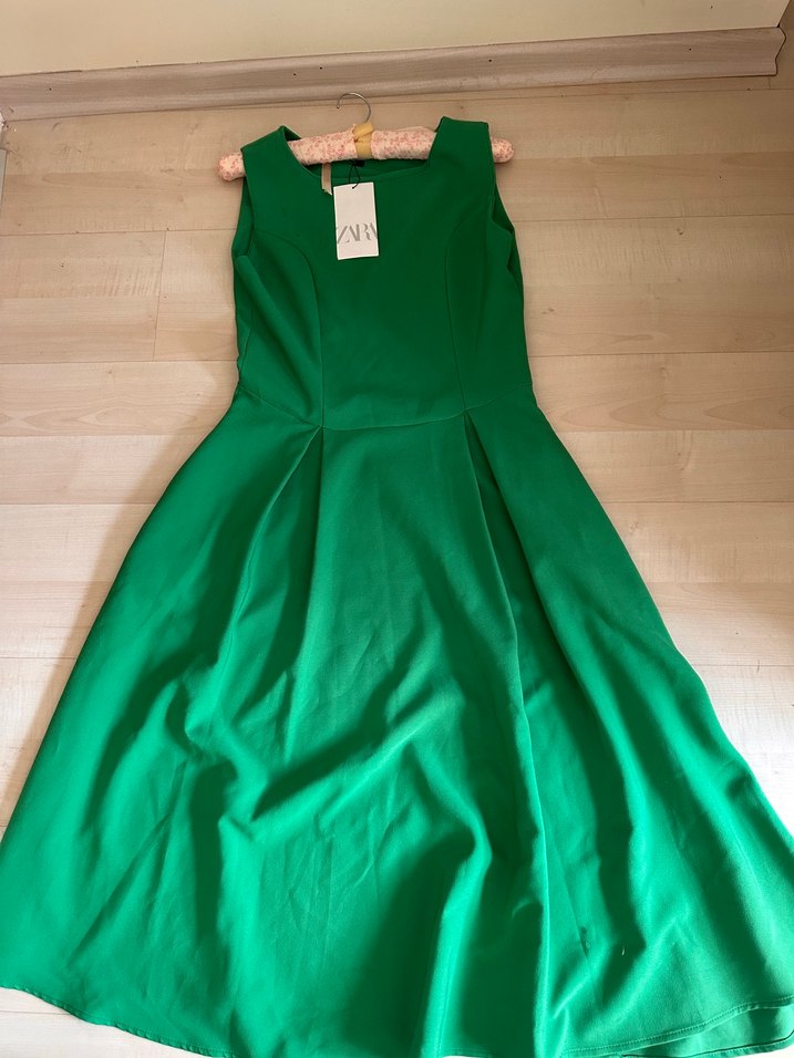 Zara model 40 beden Yeşil Parlak Midi Kloş Elbise