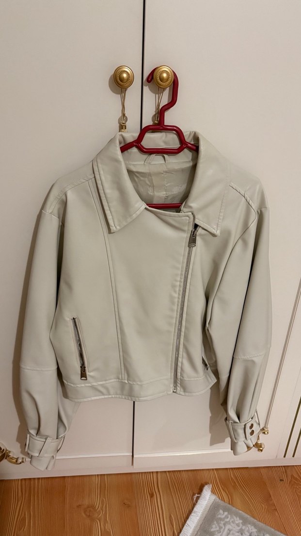 Zara model Bej Kadın Deri Ceket Fermuarlı
