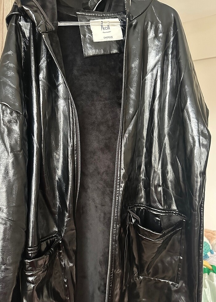 parlak ceket ici kürklüdür iki cep bir şapka detayı mevcuttur üründe herhangi bir deforme yoktur