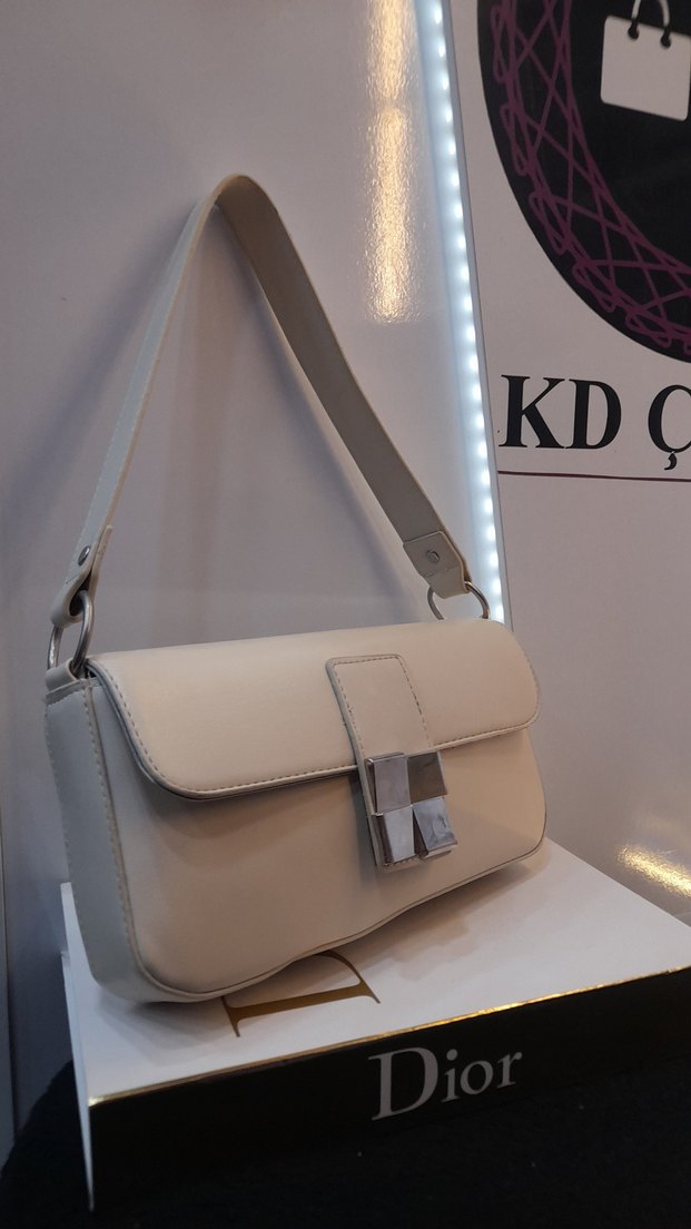 Zara Model Gümüş Tokalı Bej Deri Kadın Çanta