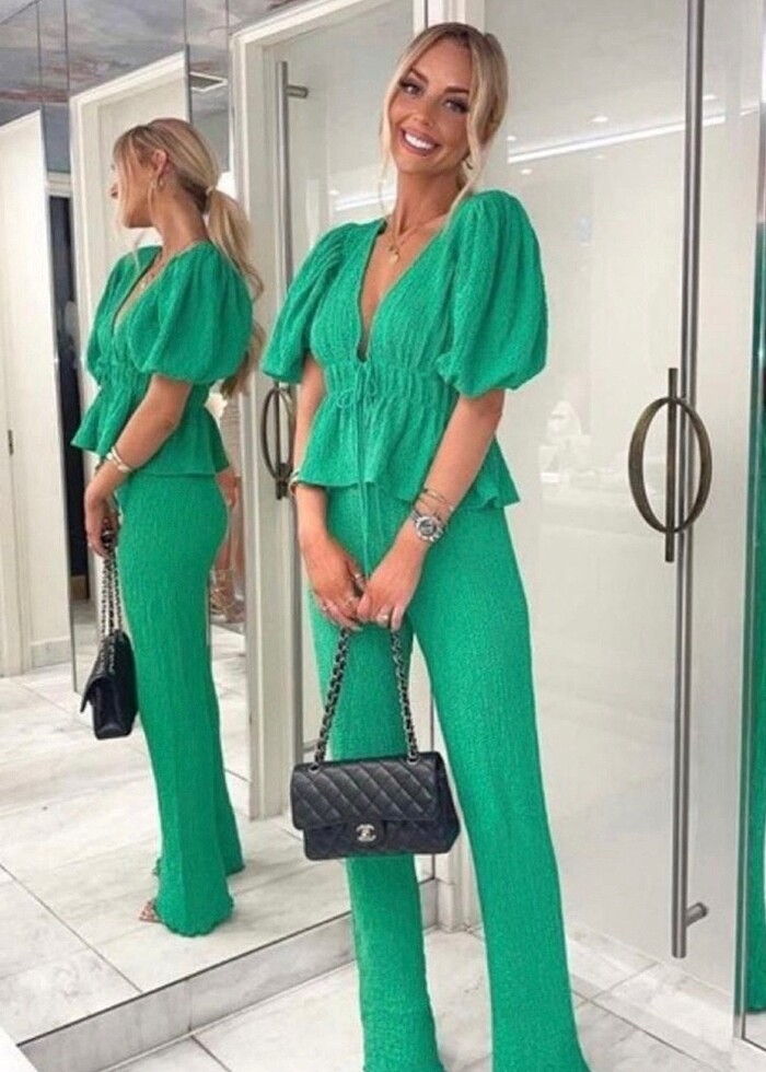 Zara model ikili takım L beden sorunsuz yeni yazlık empirme kumaş üzerinizde yok gibi hissedeceksiniz #zara #mango #moda #takip #beğeni #ikili #takım #pantolon #bluz #şık #yeşil #sarı #mavi #fashion