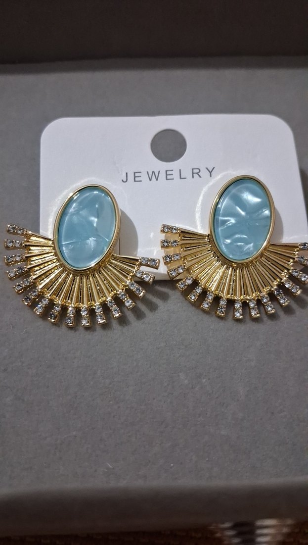 Mavi parlak detaylı, kısa uzunlukta mini kadın küpeleri. Modern klasik stil ve ışıltılı tasarım, düğünler için uygundur. ✨#Zara #küpe