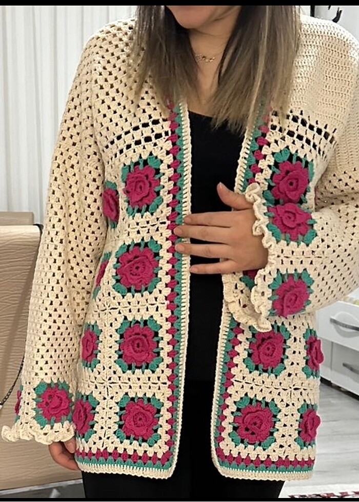 Zara model motifli el örgüsü hırka