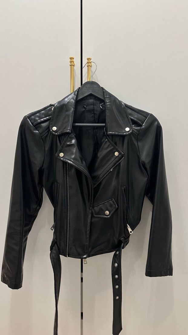 Kısa deri ceket . Sadece yakasında deforme olarak kırılmalar var sadece . Başka bi kusuru yok .