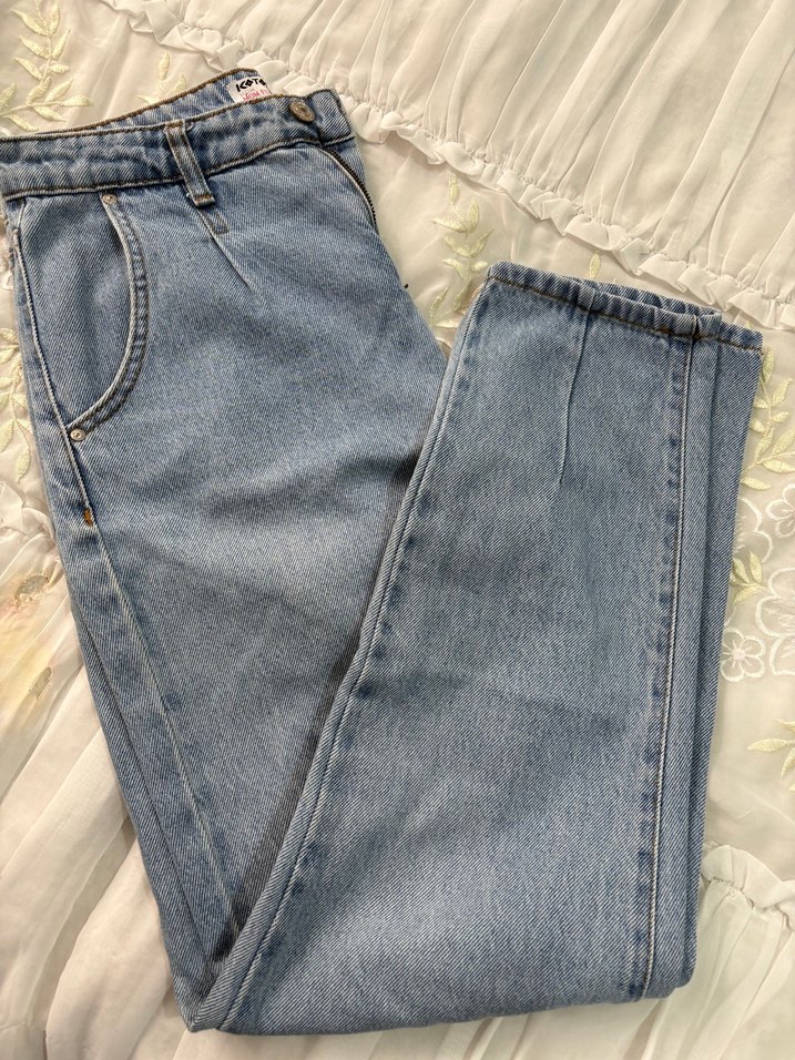 Mavi denim kumaştan, pilili ve salaş kesime sahip midi uzunlukta kadın kot pantolon. Günlük kullanıma uygun rahat ve trend bir model.