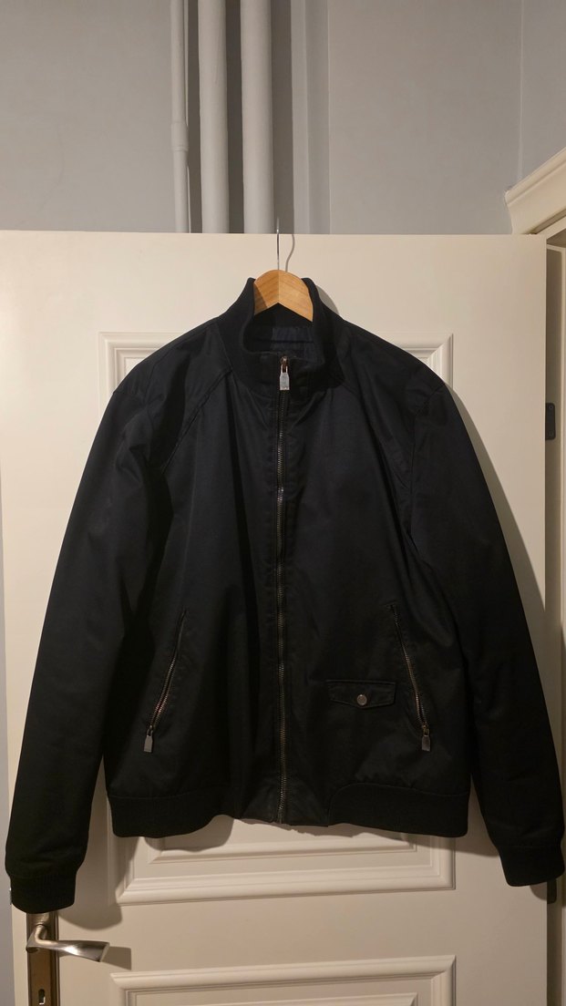 Siyah renkli, fermuarlı ve kesikli yaka detayıyla erkek ceket. Uzun kollu ve normal kesim, günlük kullanıma uygun. herhangi bir sorunu yoktur