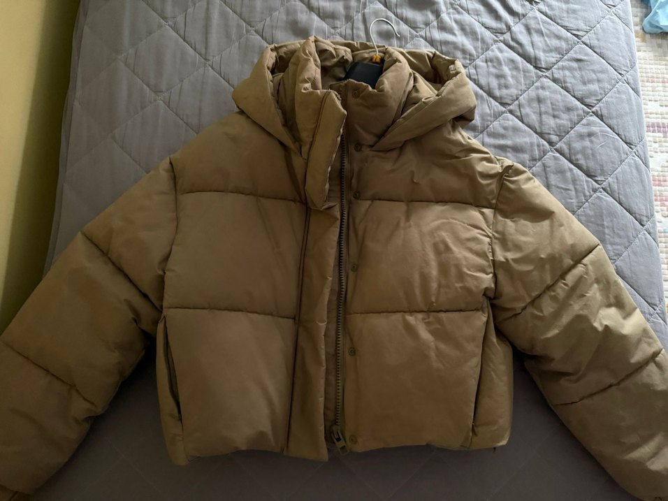 Bej renkli, uzun kollu, düğmeli kadın kışlık mont. Notlu yaka ve rahat sokak stili ile günlük kullanıma uygundur.