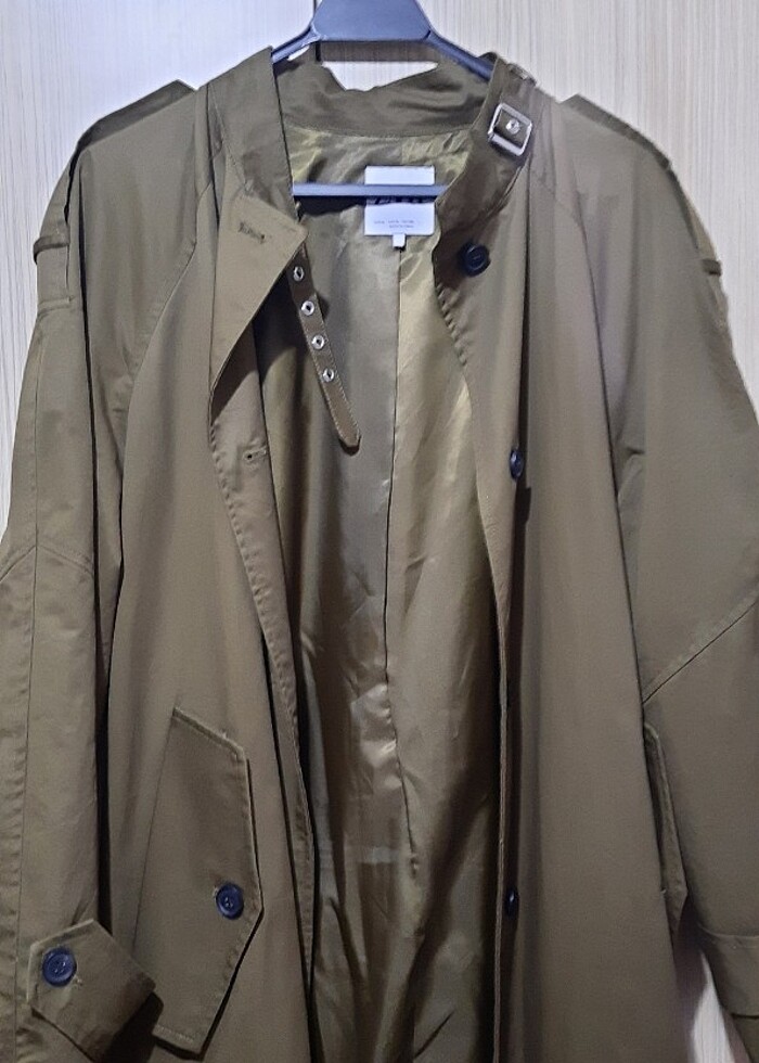 Trenchcoat gibidir ve uzundur. Hiç giyilmemiştir.