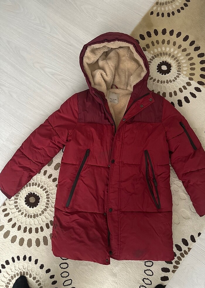 11-12 yaş oldukça kalın içi yünlü lekeleri mevcut yıkanınca çıkar sol fermuarı bozuk ama yapılabilir