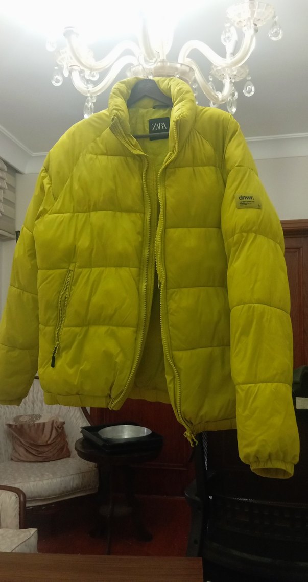 açık fıstık yeşili sarı arası hoş bir renk. fotoğrafta net çıkmıyor. hafif şişme. bir kusuru yok. kendinde hafif.