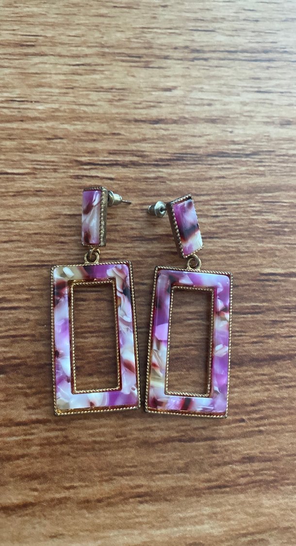 Mor pastel tonlarda Vintage desenli,uzun bohem tarzı küpeler. Romantik akşamlar için uygun.