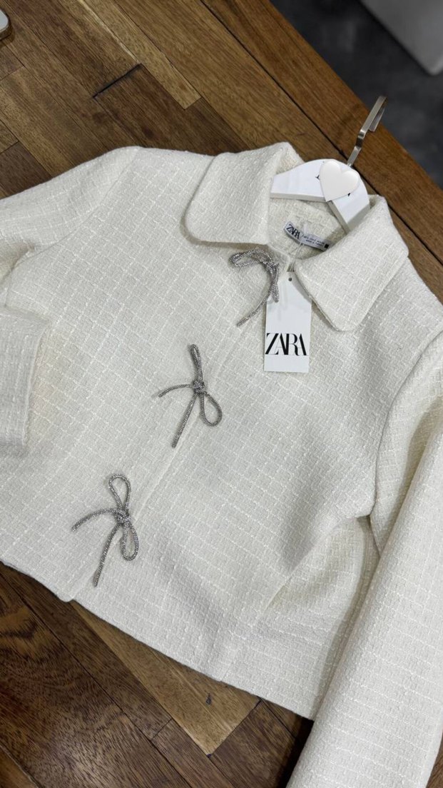 Zara Nakış Detaylı Kısa Beyaz Keten Kadın Ceket