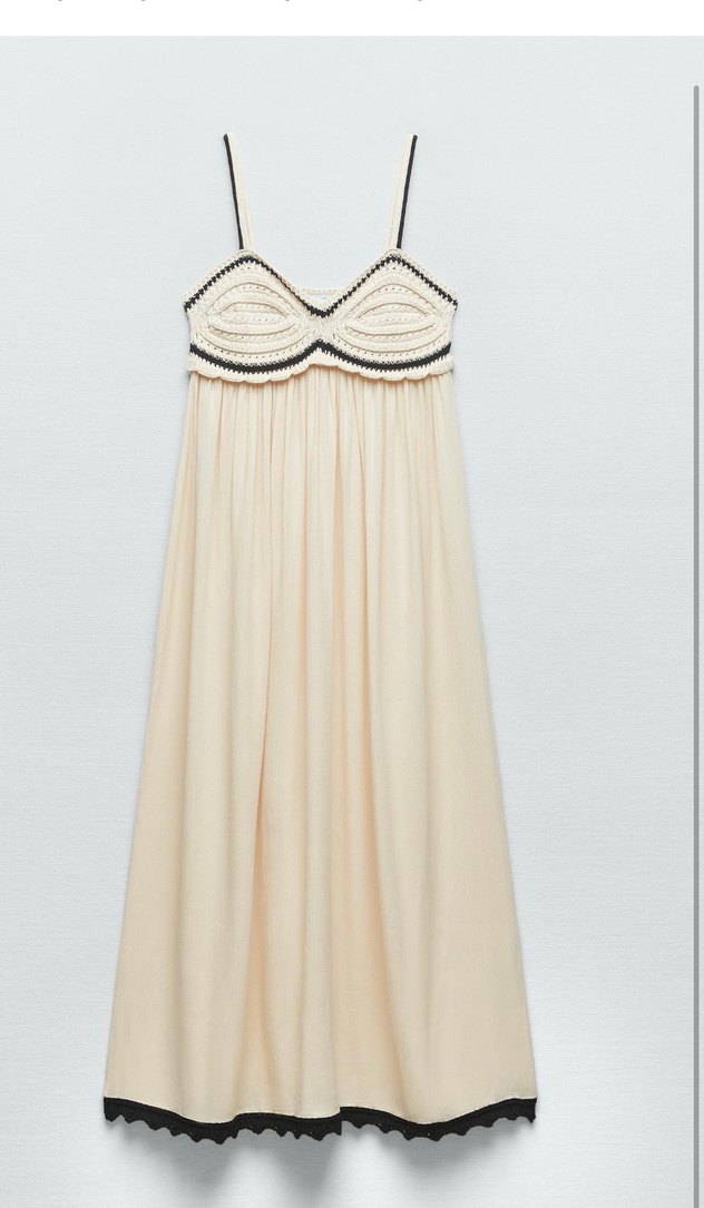 Zara markasına ait, nakışlı üst kısmı ve ince askıları olan, bol kesim uzun elbise. Sadece bir defa tatilde giyildi..