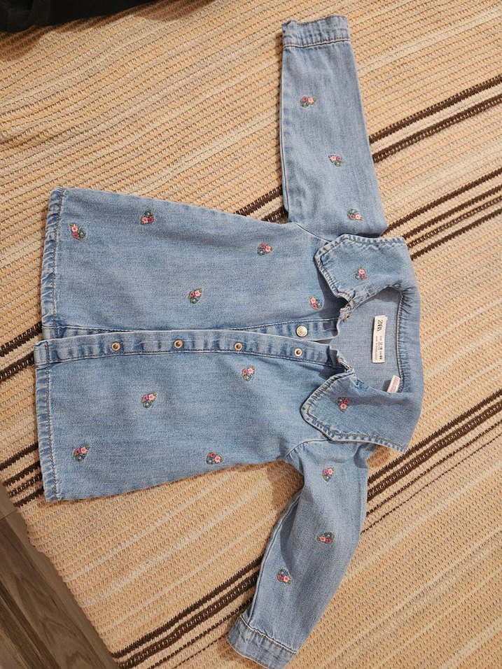 ZARA Nakışlı Düğmeli Mavi Denim Elbise