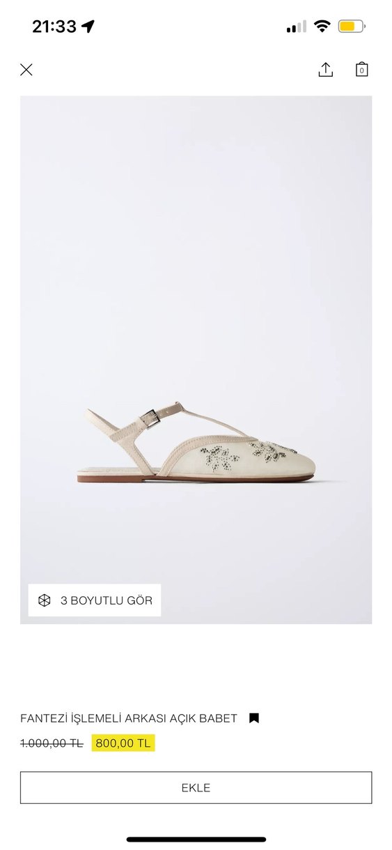 Zara Nakışlı Kadın Ayakkabı babet