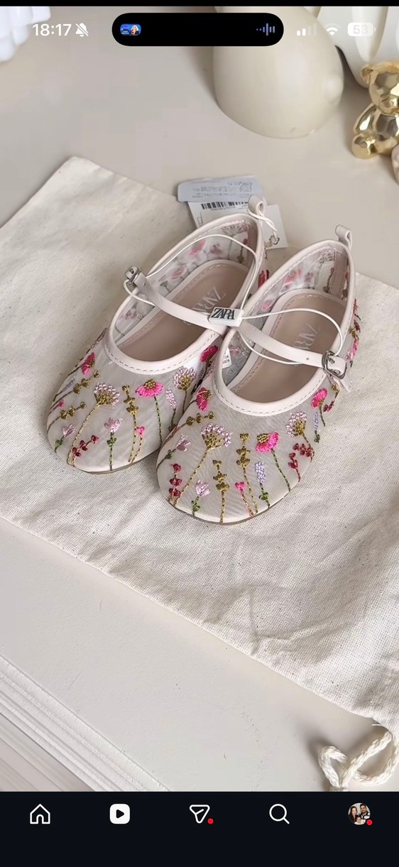 Zara Nakışlı Pembe Dantel Detaylı Kız Babet