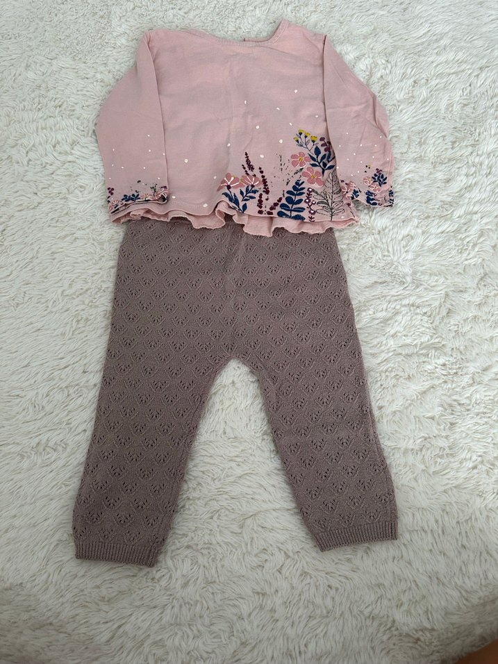 Zara Nakışlı Pembe Triko Bebek Kız Takımı 9-12 ay