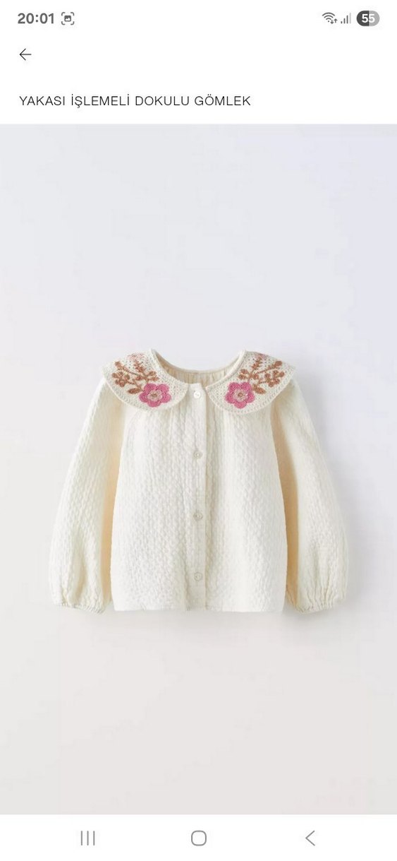 Uzun kollu, bol kesim beyaz triko bluz, nakışlı yakasıyla bohem tarzı yansıtır. Rahat ve zarif bir tasarıma sahiptir.