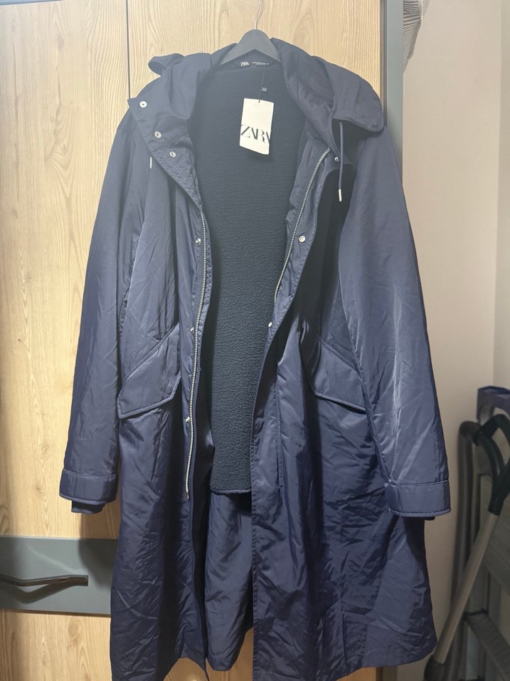Navy renkli, fermuarlı, cepli mont. Rahat kesim, uzun kollu ve yumuşak sıcak kumaştan üretilmiştir. Günlük kullanım için uygundur.