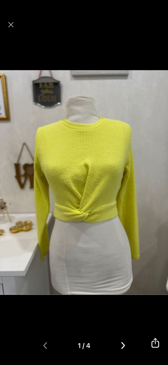 Sarı renkli, yuvarlak yaka ve uzun kollu örgü kadın kazak. Vücuda oturan kısa kesimiyle rahat ve şık bir sokak stili parçası.