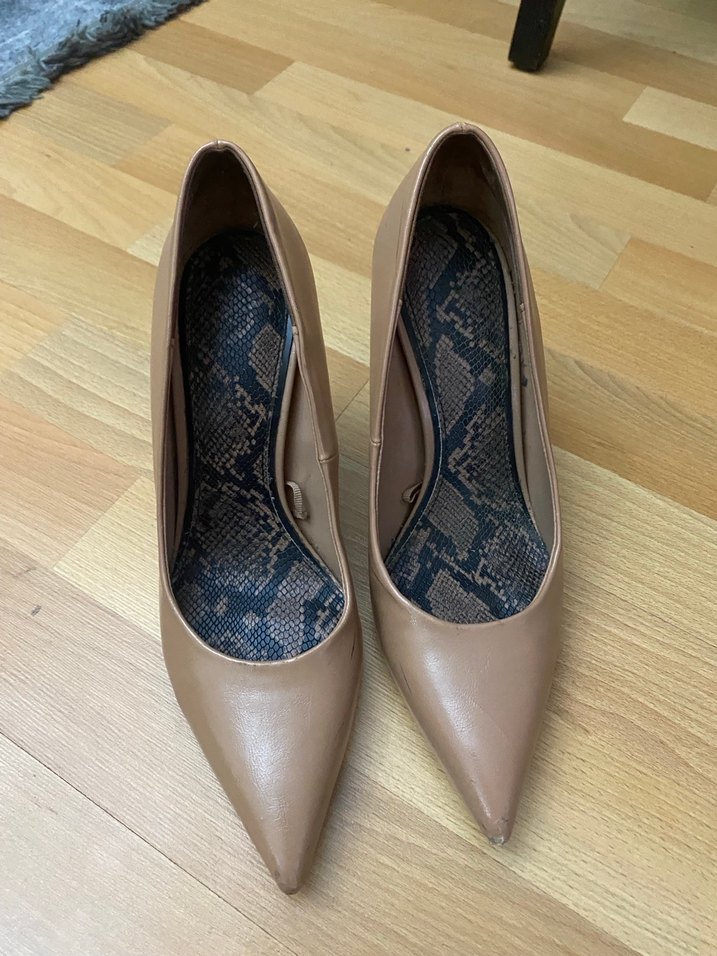 ZARA KOYU NUDE GERÇWK DERİ TOPUK STİLETTO ÇOK GİYİLMEDİ AMA SOL TEKİNİ YÜRÜRKEN TAŞA ÇARPTI KIZIM ONUDA SON FOTODA BELİRTTİM ÇOKTA BELLİ OLMUYOR