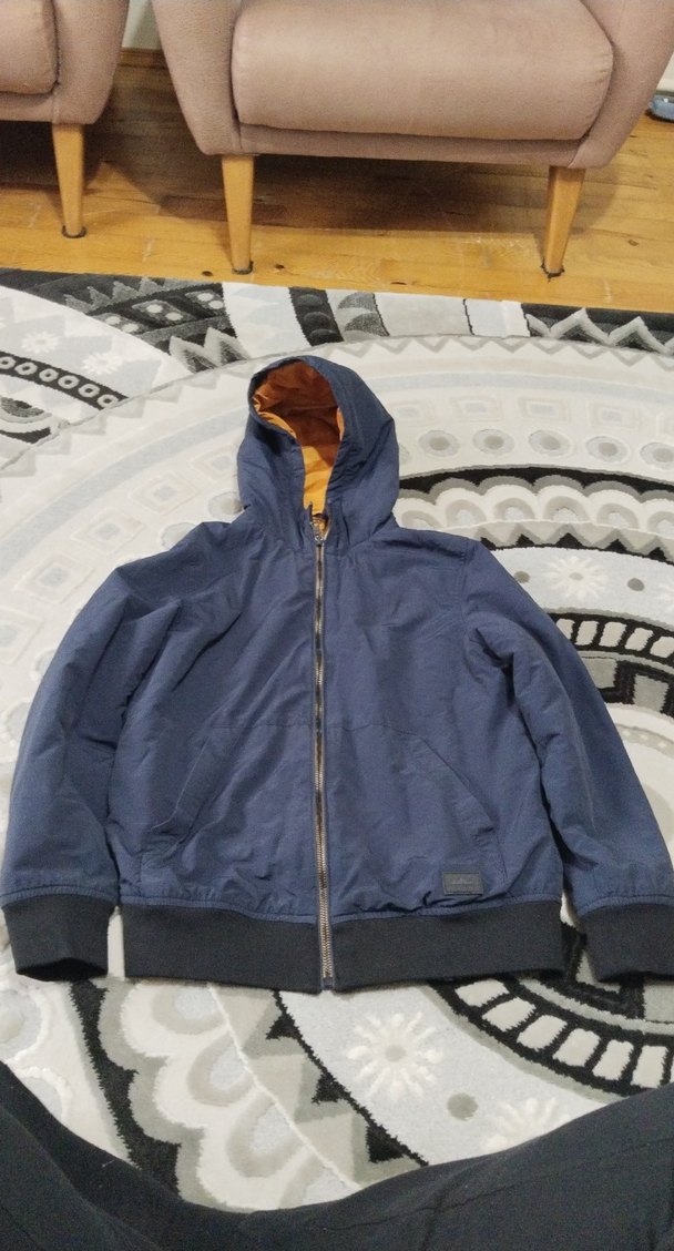 çocuklar için kapüşonlu, fermuarlı ve fitted kesime sahip mavi ve gri tonlarında yumuşak, sıcak tutan kumaştan mont kaban sıfırdan farksız. 7 ile 12 yaş arası giyebilir orginal unisex ürün