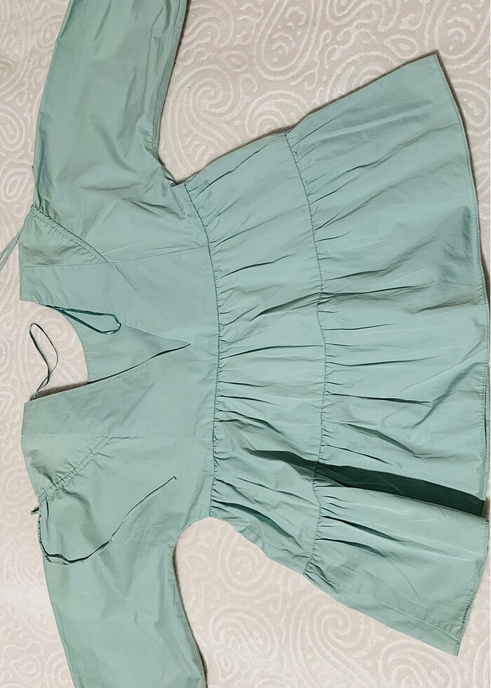Zara marka, S beden, mint yeşili bluz. • Dirseği geçen kollar • V yaka, arkaya düşen kesim • Pile detaylı, rahat kalıp Temiz, orijinal ve şık bir üründür.