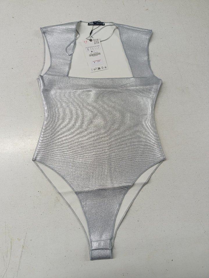 Zara orjinal Gri Parlak Midi Bodysuit