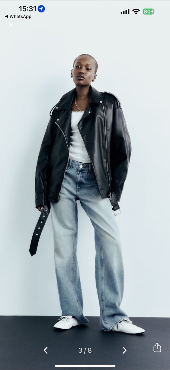 Siyah deri ceket, bel ve kesik yaka detayına sahiptir. Regular fit ve askılı kolludur, günlük sokak stiline uygundur. Yeni sezon bir kere giyindim