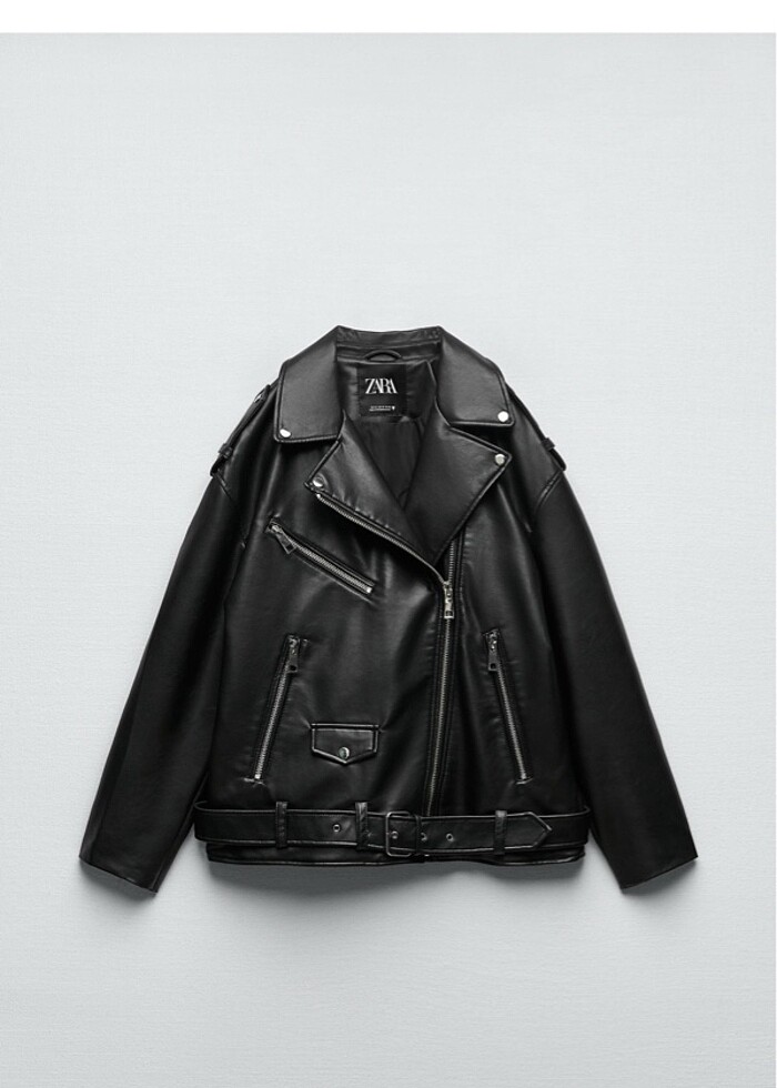 Zara OVERSIZE SUNI DERI BIKER CEKET