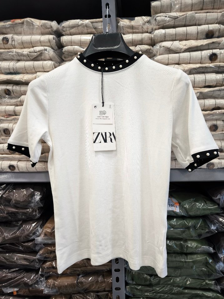 Zara Pamuklu Beyaz İncili Bluz