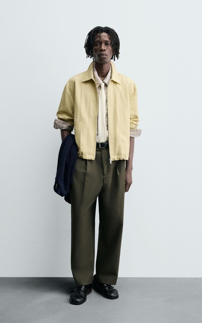 Zara Sıfır Etiketli Pamuklu Kumaştan Crop Fıt Ceket Rengi Açık Sarı Diye Geçiyor Ama Krem Bej arası bir tona sahip fotoğraflarda ürün ölçüleri yazıyor