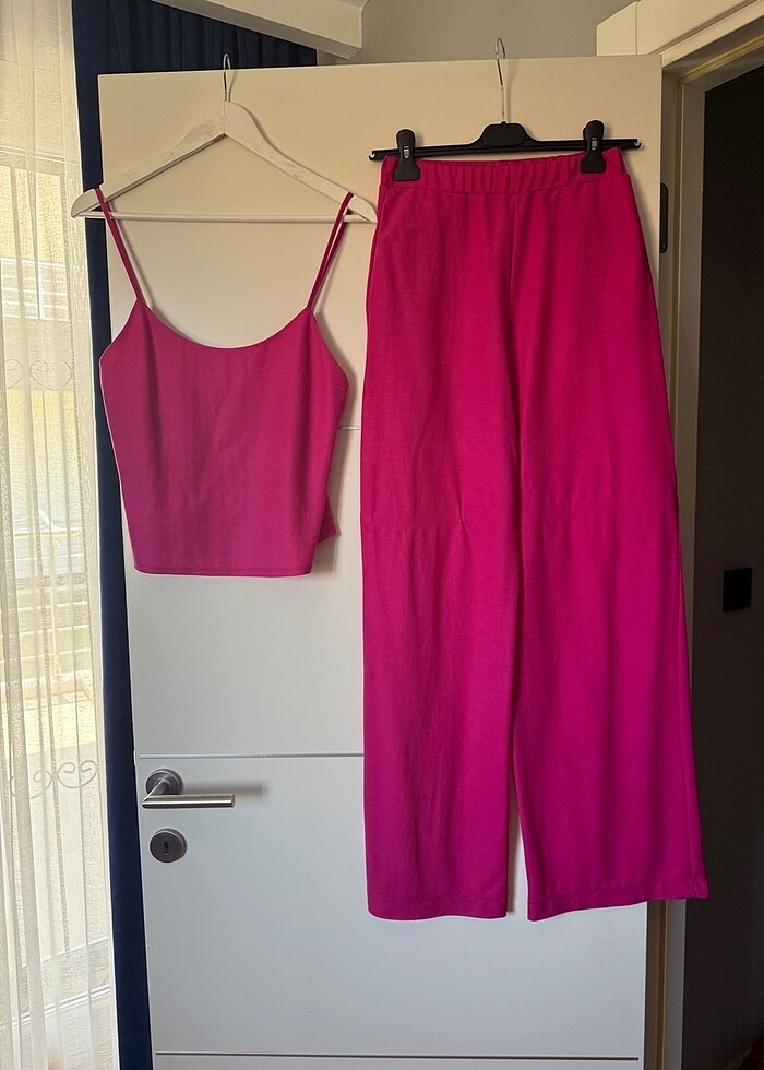 Yazlık Pantolon astarsız. Lazer kesim iç çamaşırı ile iç belli etmiyor. Pantolon S beden. Bluz pantolonun takımı aynı renk ve kumaş. Bluz bedeni M beden. Pantolonun üzerine biraz daha dökümlü durması açısından M almıştım. Bluzun iç astatı var sütyensiz giyilmeyede müsait. Son resimde üzerimdeki duruşunu görebilirsiniz. #zara #zaraelbise #zaratakım