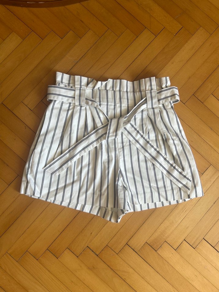 Zara Paperbag Çizgili Pilili Beyaz Mini Şort