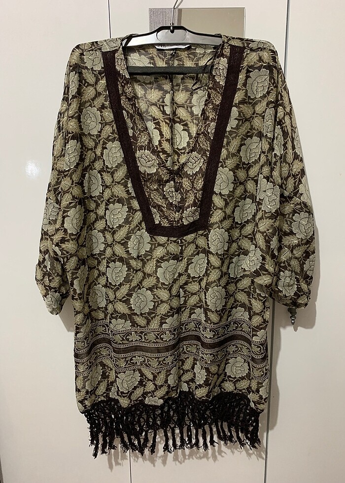Zara’dan alındı sadece etiketli çıkarıldı hiç kullanılmadı deniz sezonunda çok iyi gider. Pareo olarak bikini üstüne güzel bir görüntü sağlar.