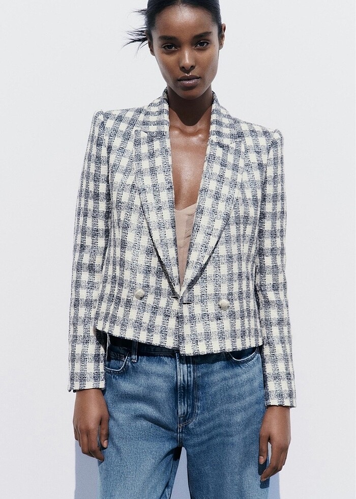 Zara parıltılı iplikli kareli blazer