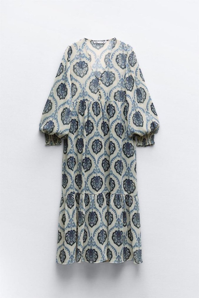 ZARA PARILTILI İPLİKLİ VE DESENLİ ELBİSE // Elastik manşetli uzun kollu, V yaka elbise. Parıltılı iplik detaylı, astarlı, fırfırlı kenarlı ve önü düğmeli. Zara’nın online sitesinden alındı. Yeni etiketli orijinal.