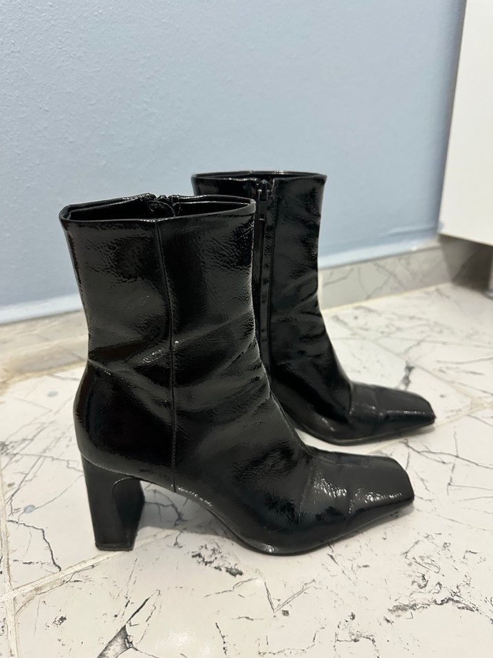 ZARA Parlak Siyah Deri Blok Topuklu Kadın Bot
