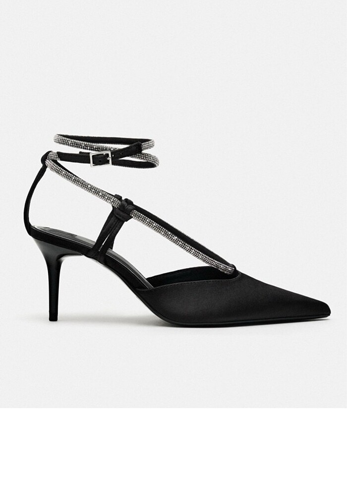 Zara parlak taşlı bantlı topuklu ayakkabı