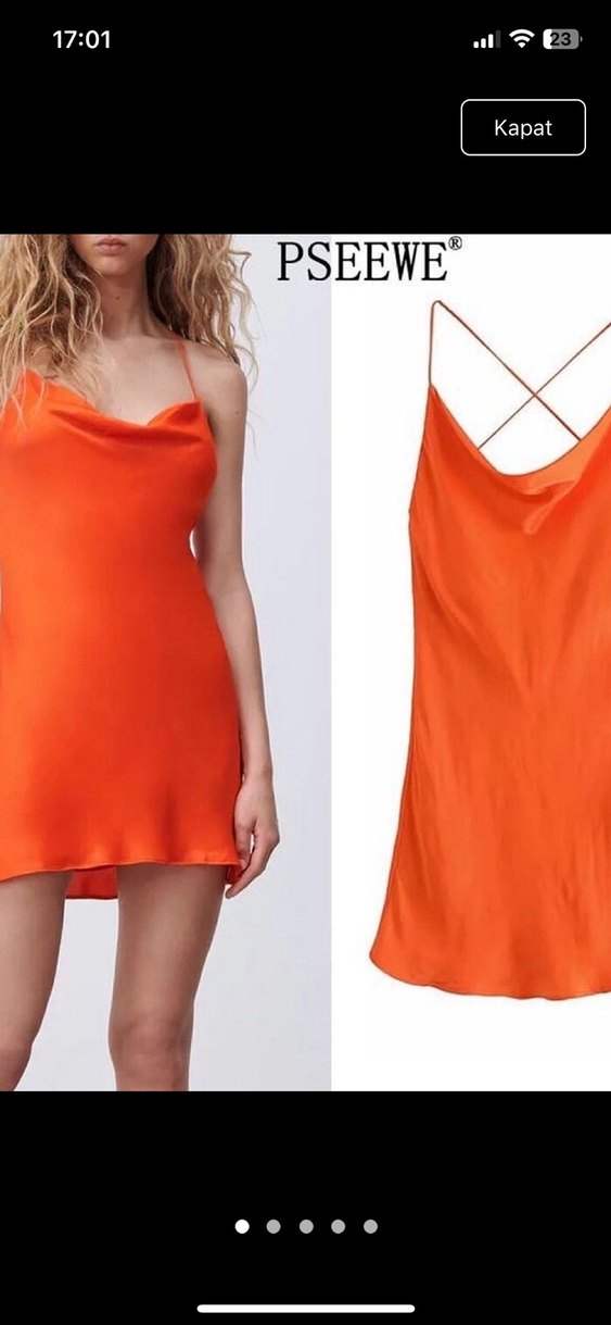 Zara marka İnce askılı, parlak turuncu, saten elbise